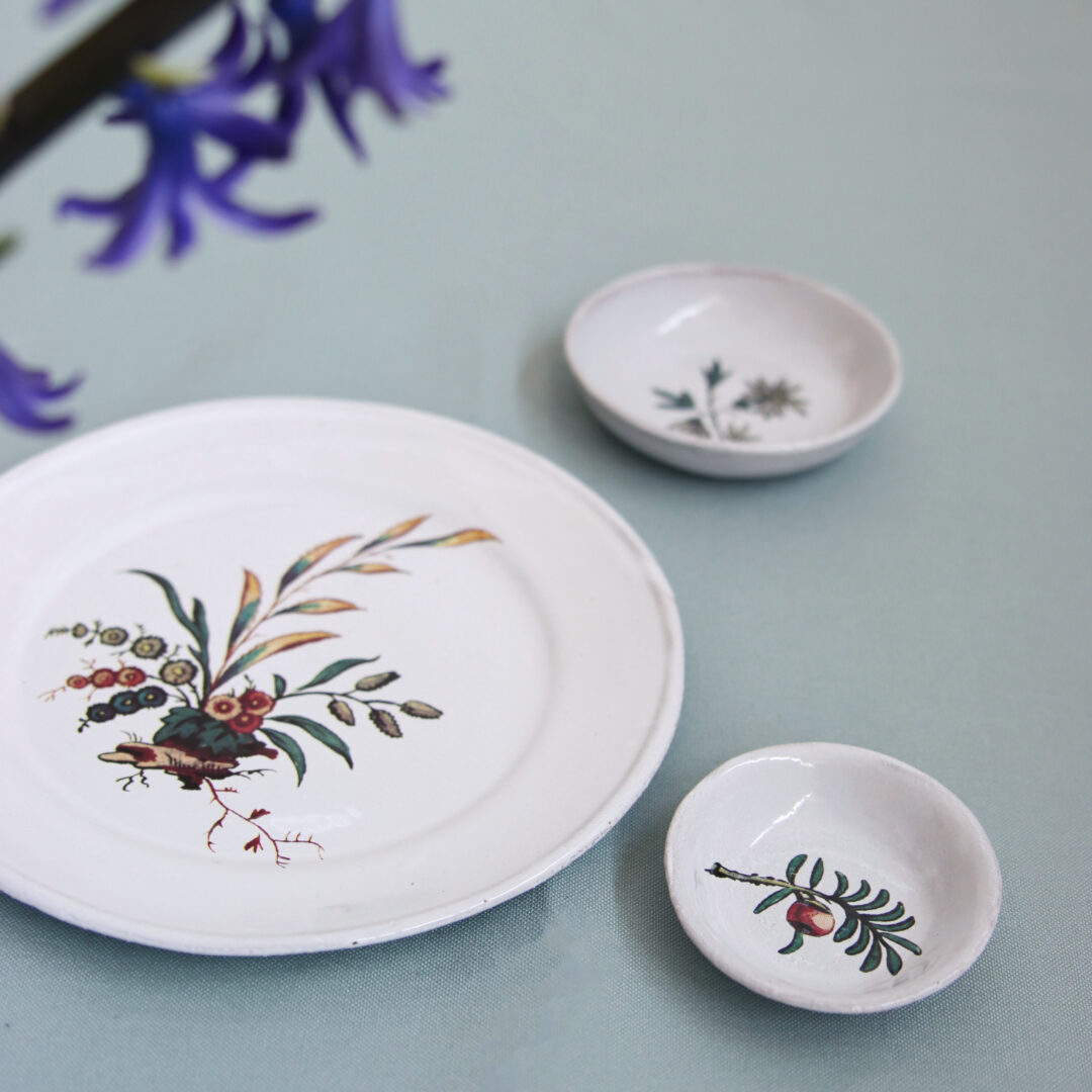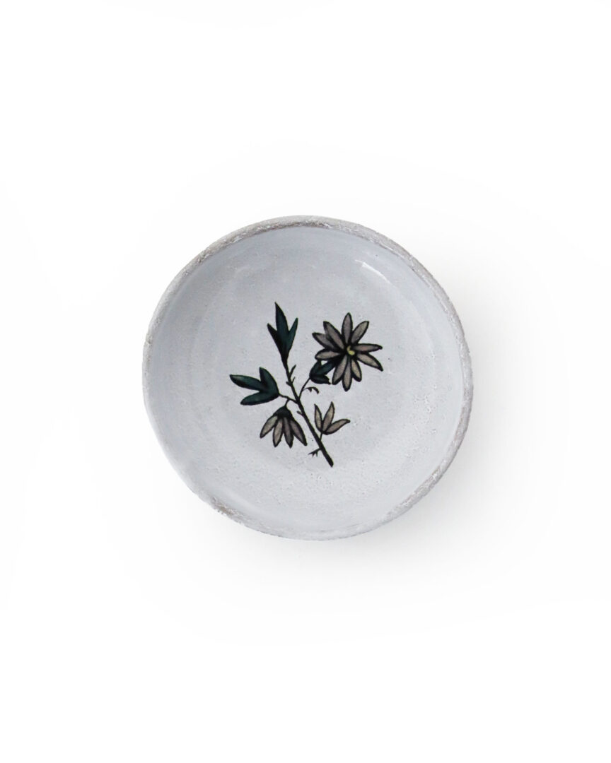 ひかえめな色合いで描かれた可憐な花々が、うつわの上で静かに咲き誇ります。