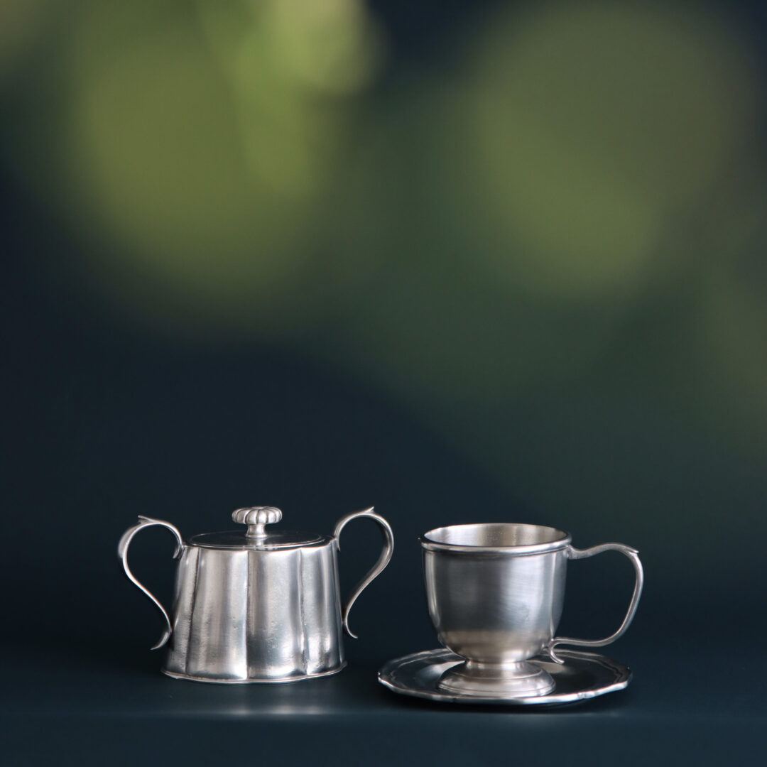 ピューターは使うほどに味わいを深め、穏やかなラインはさらに優美さを増して唯一の表情へと育っていきます。それはまるで、暮らしに寄り添う相棒のように、確かな存在感を放ちます。