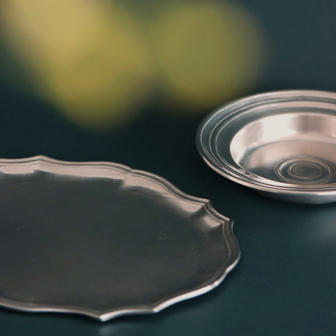鉛を含まない高品質のスズ95%を用い、イタリアの職人の手仕事によって一つひとつ丁寧に仕上げられる日用品。しっかりとした重みと静かな美しさを宿し、伝統と現代の洗練が溶け合う特別なコレクションです。