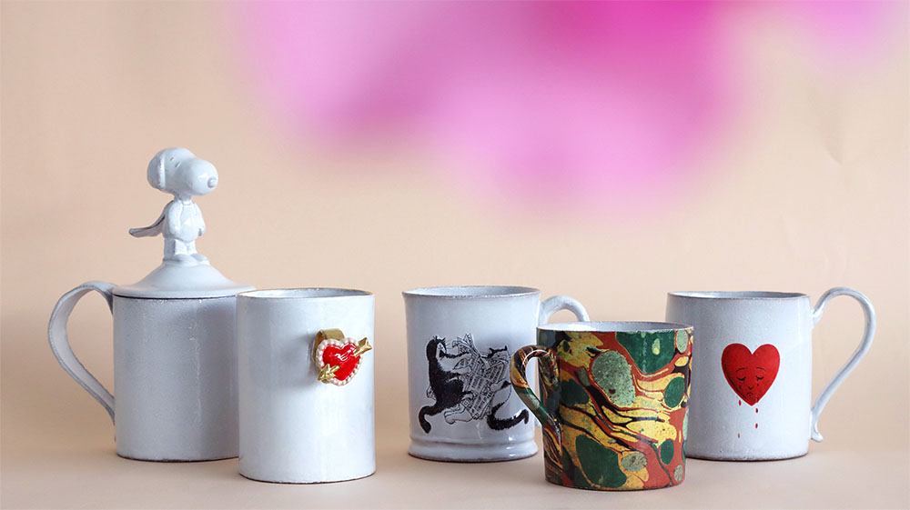 Astier de Villatteの絵柄入りマグカップは、一つひとつ異なる表情を持ち、